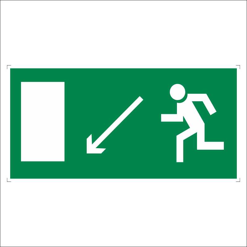 Знак «Направление к эвакуационному выходу налево вниз» нужен для создания маршрута эвакуации из здания. Знак информирует людей, находящихся в помещении, о том, в какую сторону двигаться, чтобы выбраться из опасной зоны в безопасную. Размещается на стене внутри здания. Указывает на направление налево и по плоскости, имеющей наклон. В дополнение к плану эвакуации направляет движение людского потока, снижает панику, повышает эффективность эвакуационных мероприятий при пожаре или иных форс-мажорных обстоятельствах.