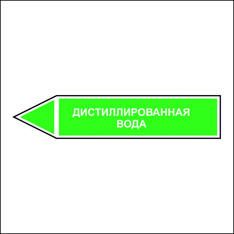 Знак маркировки трубопровода Дистиллированная вода - направление движения налево