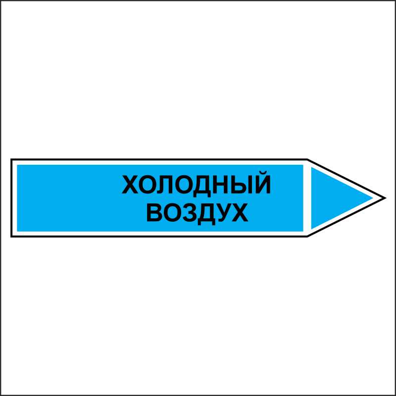 Знак маркировки трубопровода Холодный воздух - направление движение направо