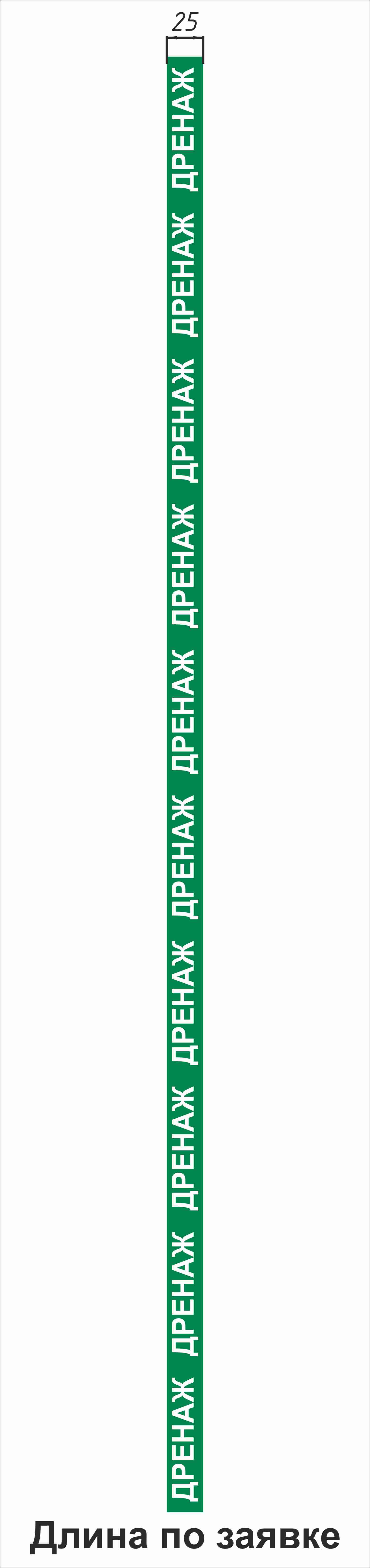 Размер: ширина: 25мм., длина: 50м.,Плёнка самоклеящаяся ПВХ, Дренаж (белые буквы на зел. фоне)