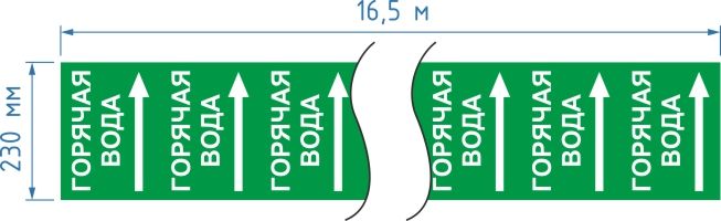 Опознавательная маркировочная лента зеленая с белой надписью Горячая вода и стрелкой 230мм x 16,5м