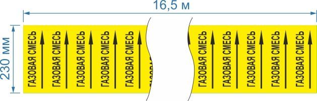 Опознавательная маркировочная лента желтая с черной надписью Газовая смесь и стрелкой 230мм x 16,5м