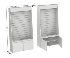 ГАССТЕНД цвет серый, экономпанель с пластиковыми вставками, с фризом, 2 двери ГС01-02 (434х2 200х1 232; ЛДСП) ГАССТЕНД комплектуется комплектом крючков, карманом А4 и фризом по желанию заказчика.С этим товаром также покупают