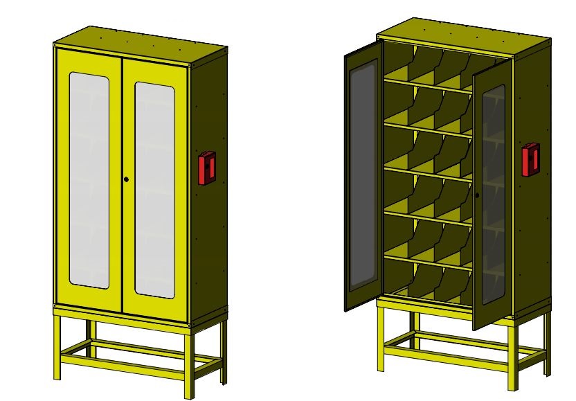 Шкаф предназначен для удобного размещения 30-ти комплектов СИЗОД (средства индивидуальной защиты органов дыхания).