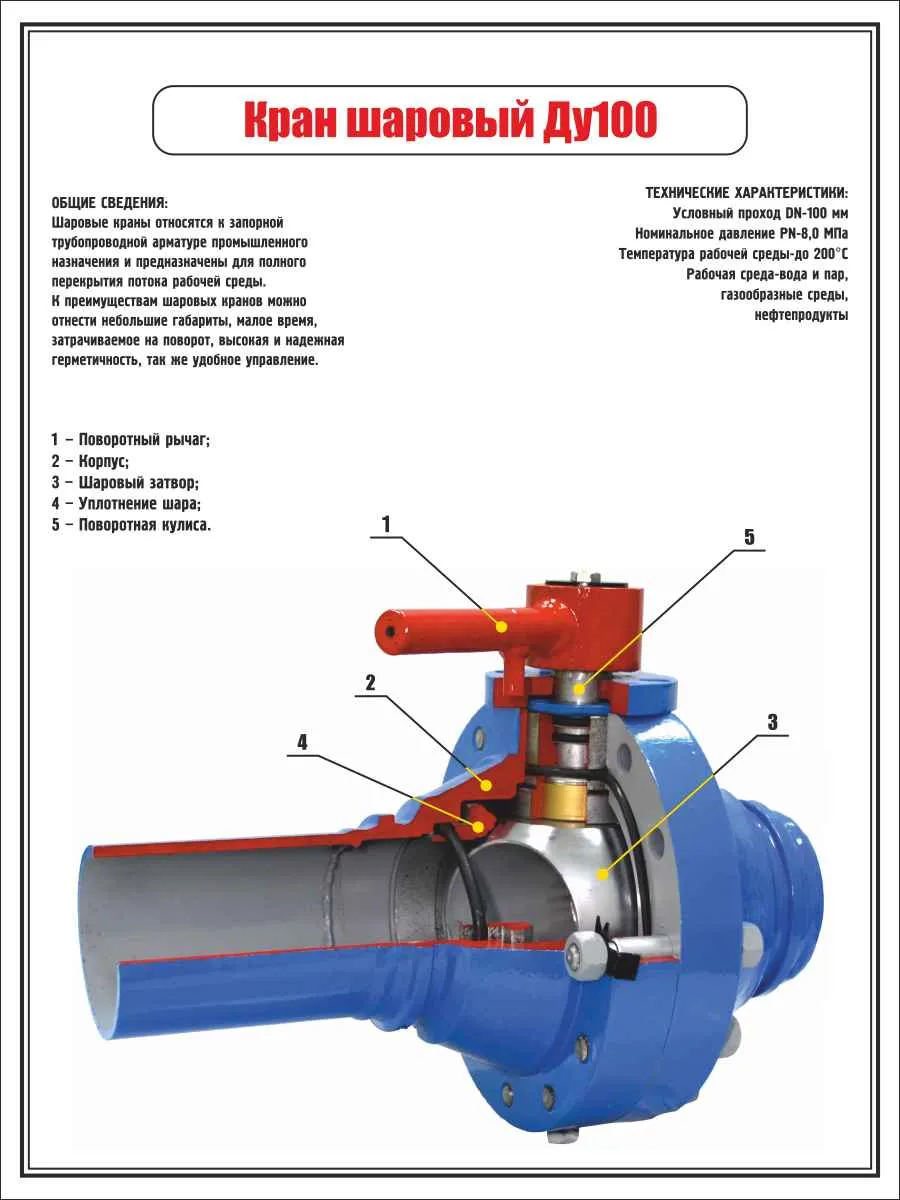 Обучаюший плакат Задвижка ДУ-80 УАВР №2 (УФ-печать) (450х600; Пластик ПВХ 2 мм; )