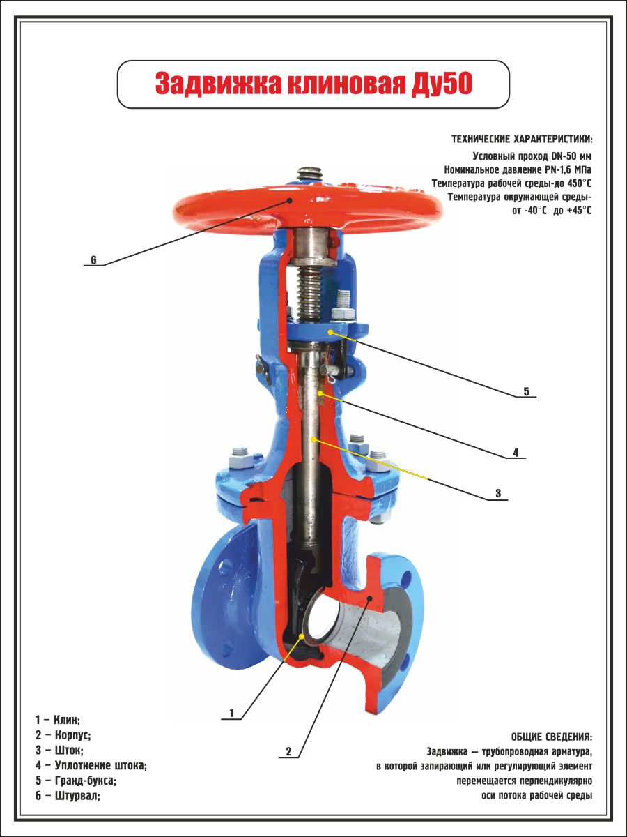 Обучаюший плакат Кран пробковый 11С722БК1 Ду50 Ру46, Привод пневматический (УФ-печать) (450х600; Пластик ПВХ 2 мм; )