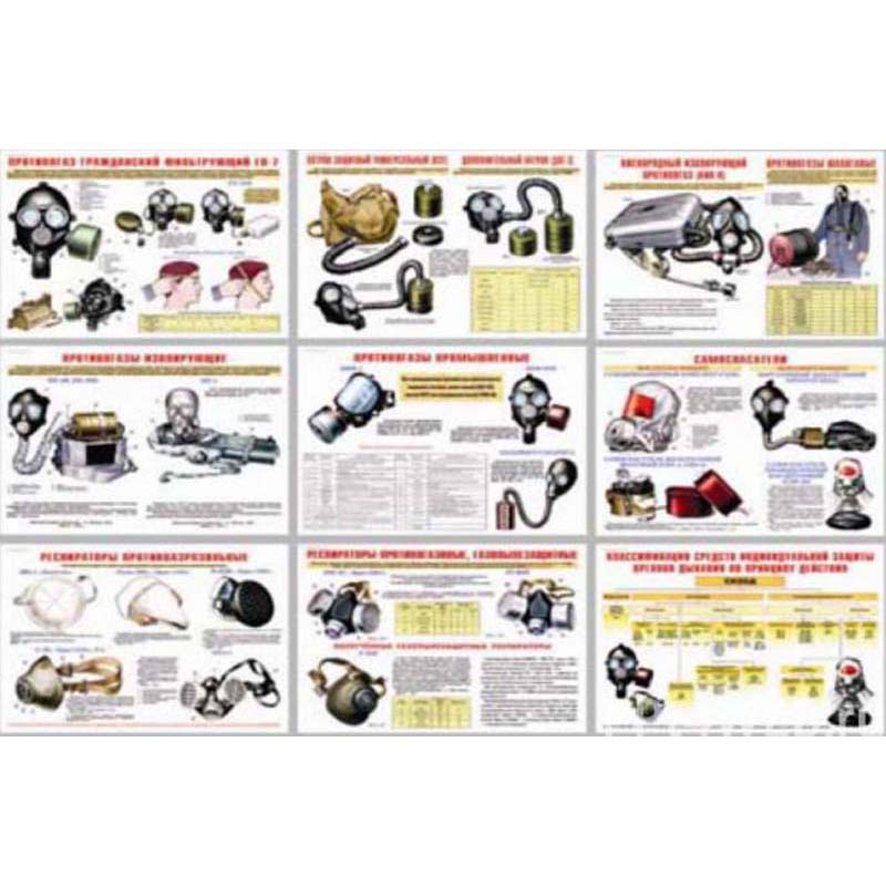Информационный плакат Комплект № 3. Средства защиты органов дыхания. Противогазы, респираторы