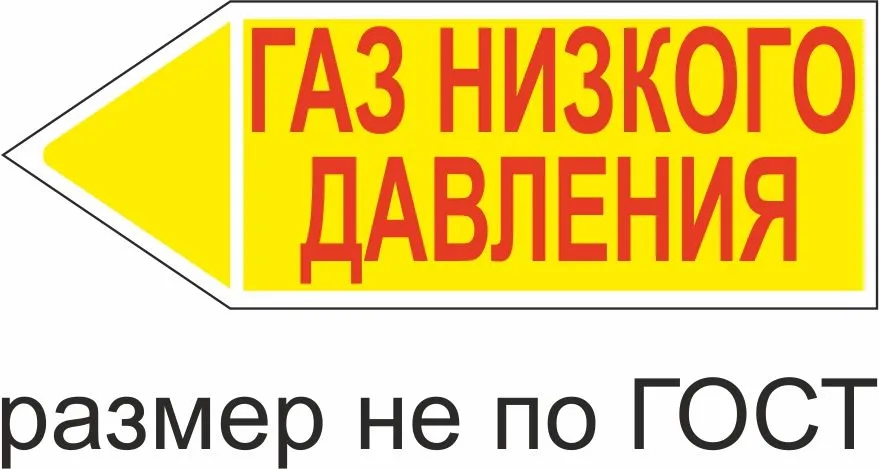 Маркер самоклеящийся Газ низкого давление 148х420 мм, фон желтый, буквы красные, налево