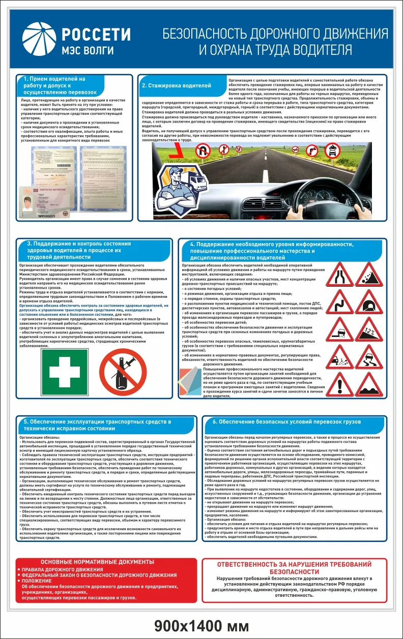Стенд информационный Безопасность дорожного движения и ОТ водителя РОССЕТИ