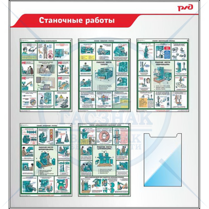 Стенд по охране труда для ОАО РЖД Охраны труда, металлокомпозит, 3 мм с профилем NIELSEN, с 6-ю карманами и перекидной системмой А4 на 10 рам.(1400х1200)