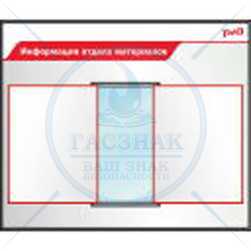 Стенд Информация РЖД, 5 карманов А4 пл., 2 кармана А4 объемн., перекидная система на 6 ячеек (1400х1200; Пластик ПВХ 4 мм, алюминиевый профиль; )