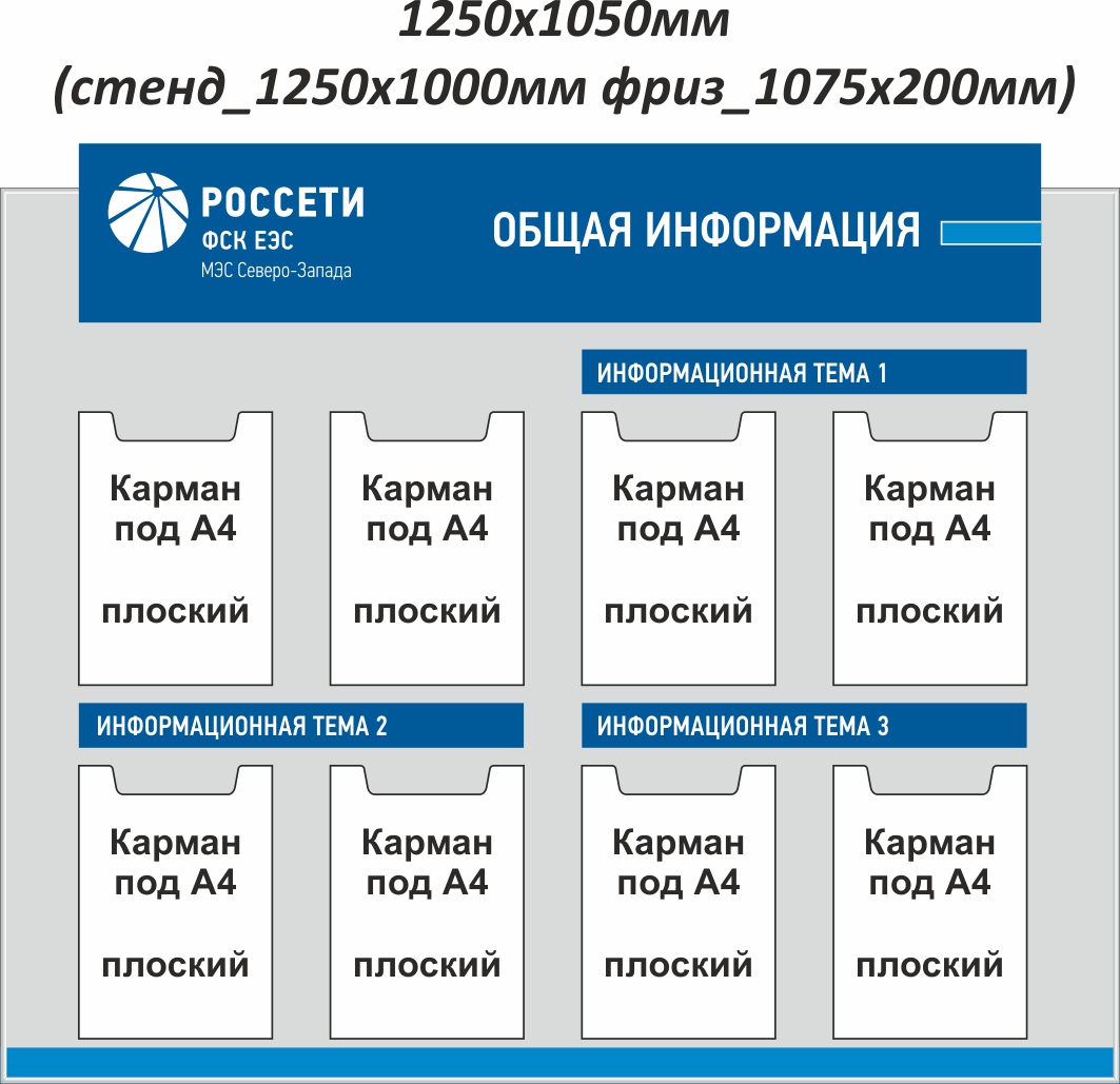 Стенд 1250x1050, Металлокомпозит 3 мм, ал. профиль, накладной фриз 1075х200мм