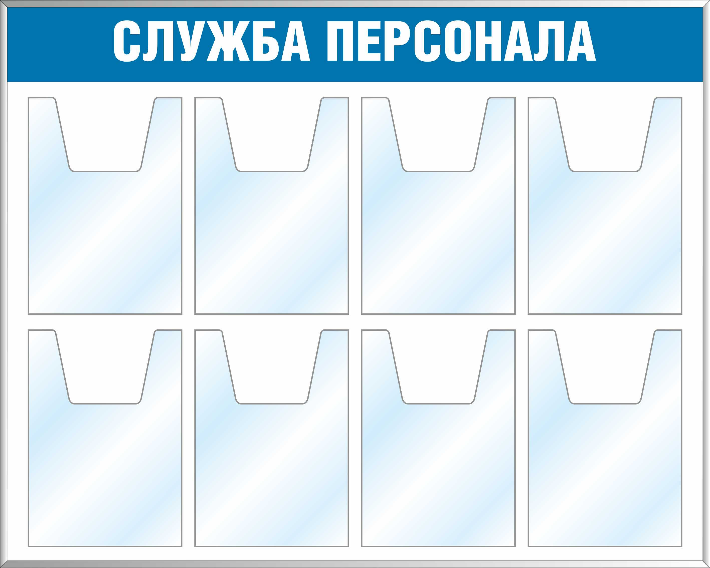 Стенд Служба персонала (8 карманов А4, объемные) (1000х800; Пластик ПВХ 4 мм, пластиковый профиль; )