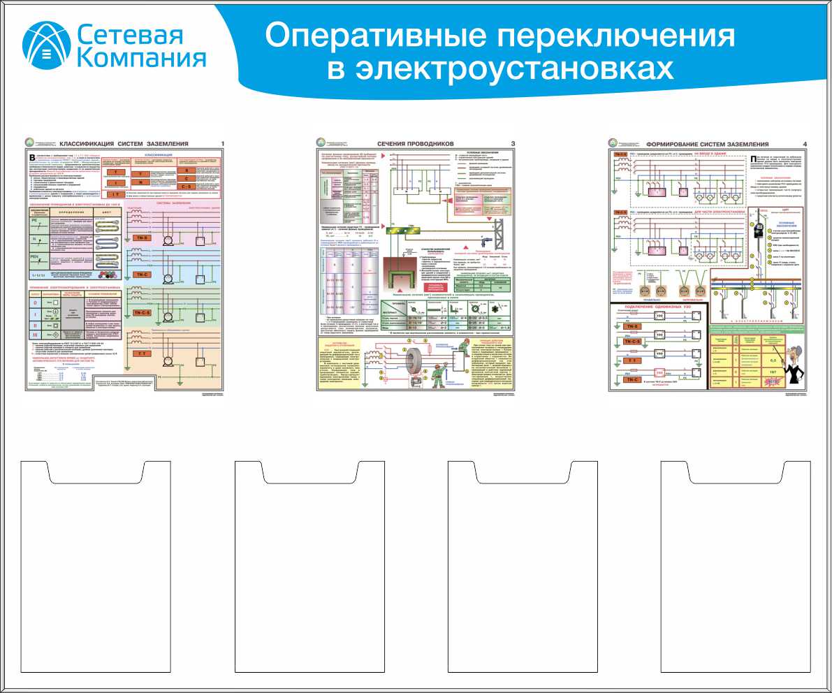 Стенд для ОТ оперативные переключения в электроустановках, 3 плаката А3, 4 карм. А4 (1 200х1 000; Пластик ПВХ 4 мм, Алюминиевый профиль)