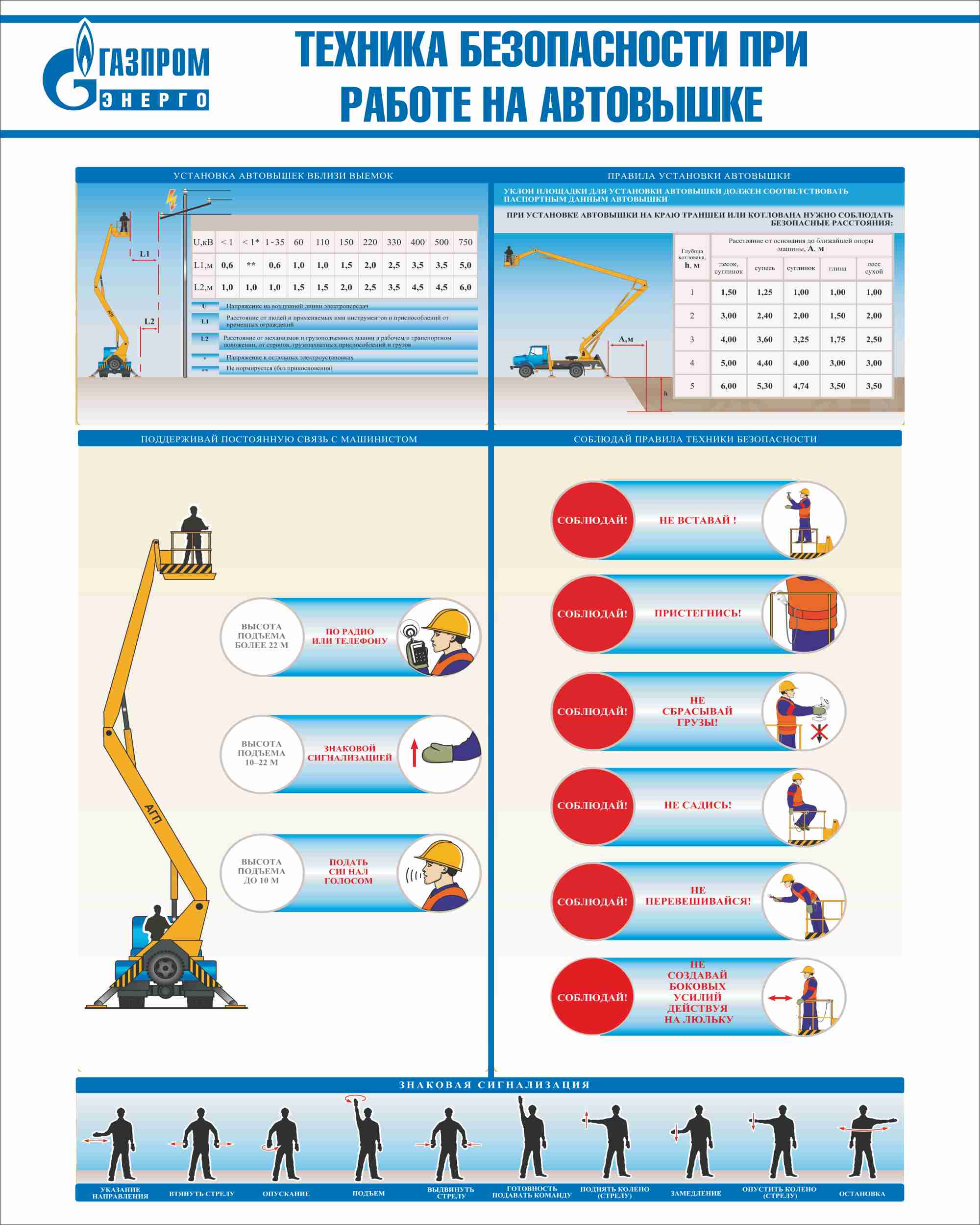 Стенд Техника безопасности при работе на автовышке, плакат, логотип, белый фон. (800х1 000; Пластик ПВХ 4 мм; Алюминиевый профиль)