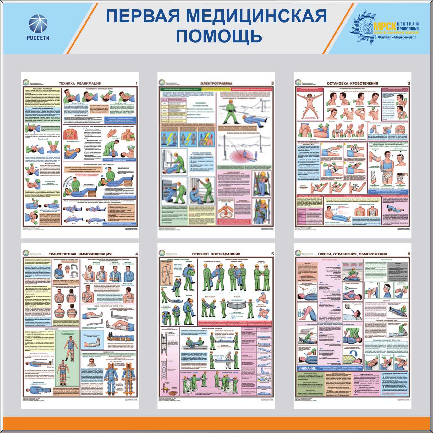 Стенд Первая доврачебная помощь, 6 плакатов А3 (1100х1200; Пластик ПВХ 4 мм, Алюминиевый профиль)