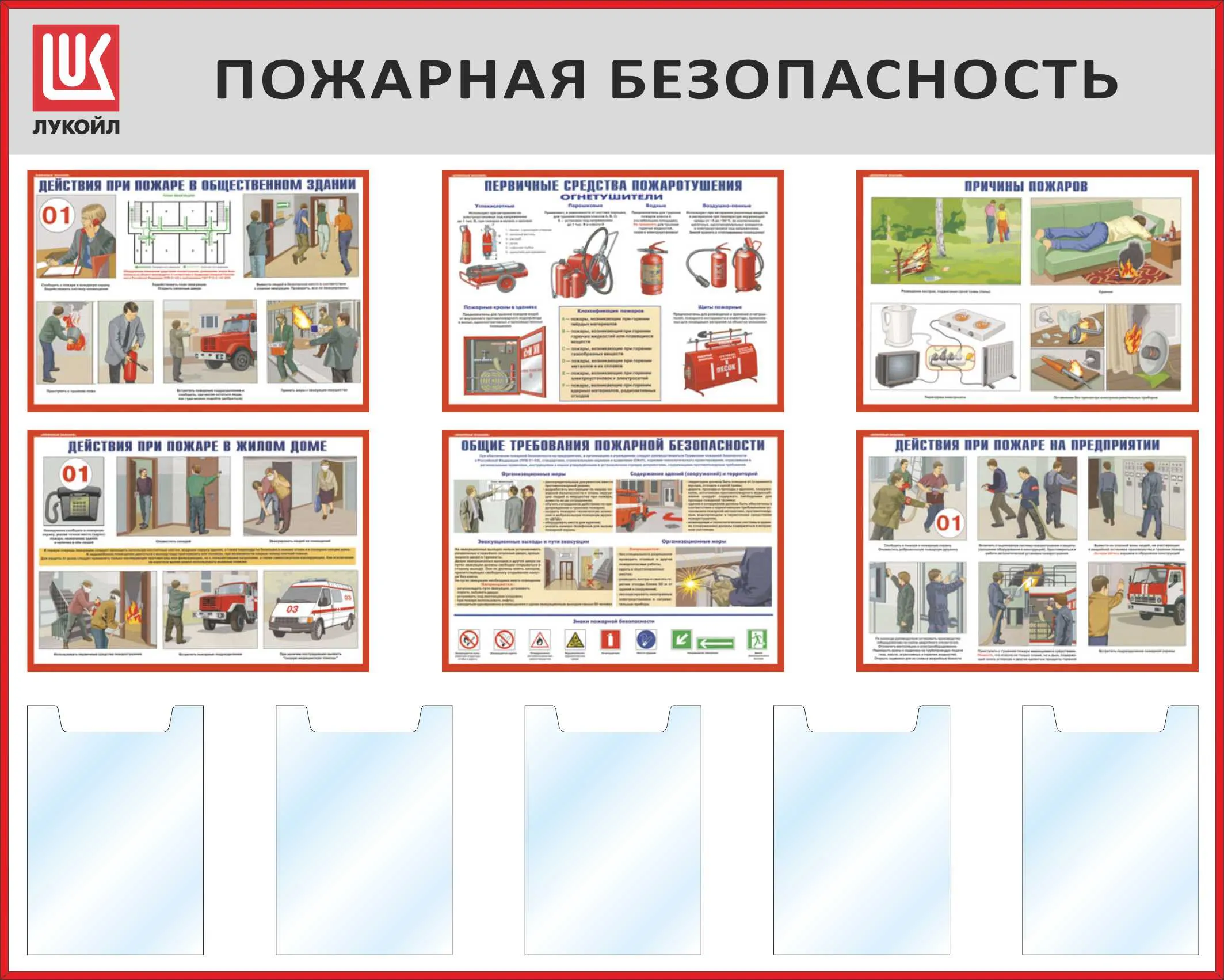 Стенд Пожарная безопасность, 3 плаката А2 (1400х900; Пластик ПВХ 4 мм; Пластиковый белый)