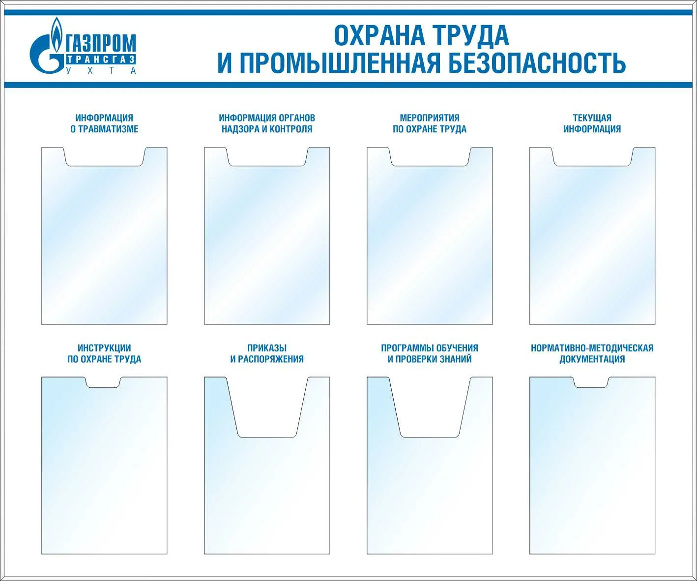 Стенд Уголок охрана труда, 6 объемных карманов А4, перекидное устройство А4 на 10 листов (1200х1200; Пластик ПВХ 4 мм, пластиковый профиль; )