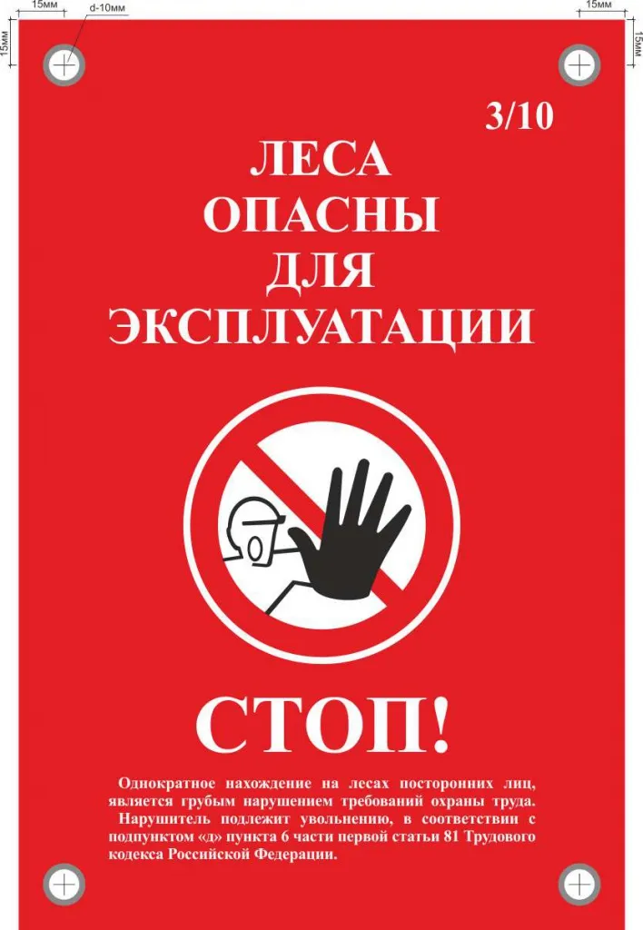 Табличка информационная двусторонняя Стоп! Леса опасны для эксплуатации