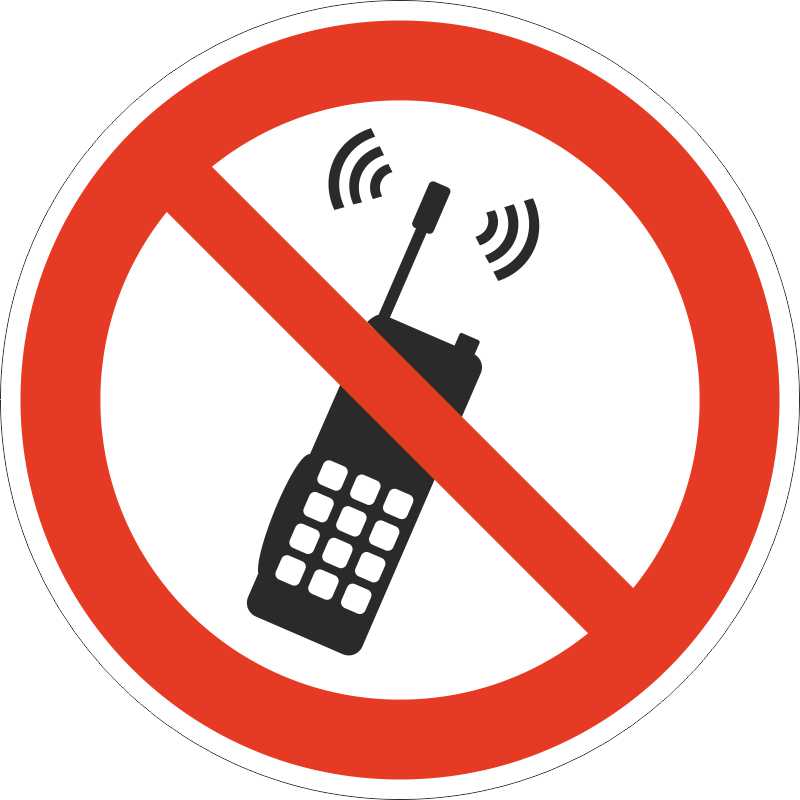 «Запрещается пользоваться мобильным (сотовым) телефоном или переносной рацией» регламентирует возможность эксплуатации аппаратов для связи на определенных территориях. Данные устройства испускают при работе электромагнитное излучение, которое может негативно влиять на работу оборудования. Табличка или наклейка крепится у входа в помещение (на участок), куда нельзя входить со включенными телефонами и рациями.Варианты исполнения: