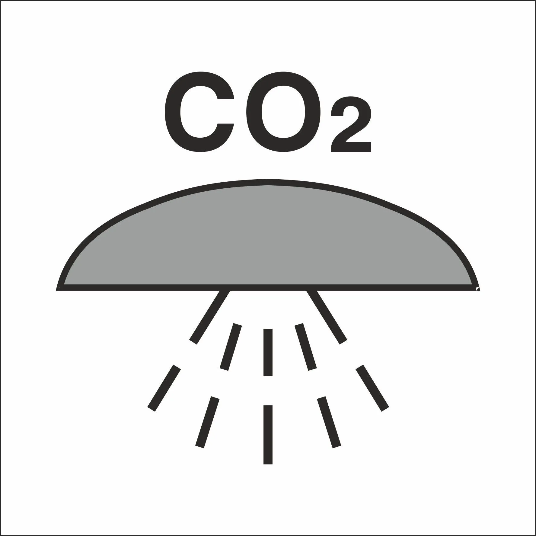 Знак ИМО Помещение или группа помещений. защищенных системой пожаротушения углекислотой (Space or group of spaces protected by fire extinguishing CO2 system)