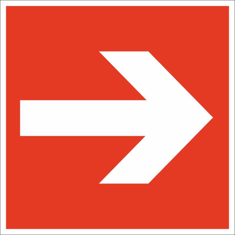 «Направляющая стрелка» — информационный знак с изображением белой стрелки, указывающей направление, на красном фоне. Предназначен для ориентирования людей в здании во время пожара, также может использоваться на улице. Применяется для указания, в каком направлении двигаться, чтобы добраться до места, где находятся пожарный щит, огнетушитель или другие противопожарные приспособления. Как правило, устанавливается совместно с прочими знаками пожарной безопасности, которые указывают на определенное средство противопожарной защиты.Продукция произведена на территории Российской Федерации и соответствует критериям подтверждения российского происхождения согласно Постановлению Правительства РФ № 719. Номера реестровых записей: 10651105, 10626803. Код ОКПД 2: 32.99.53.190 и 22.29.29.190.