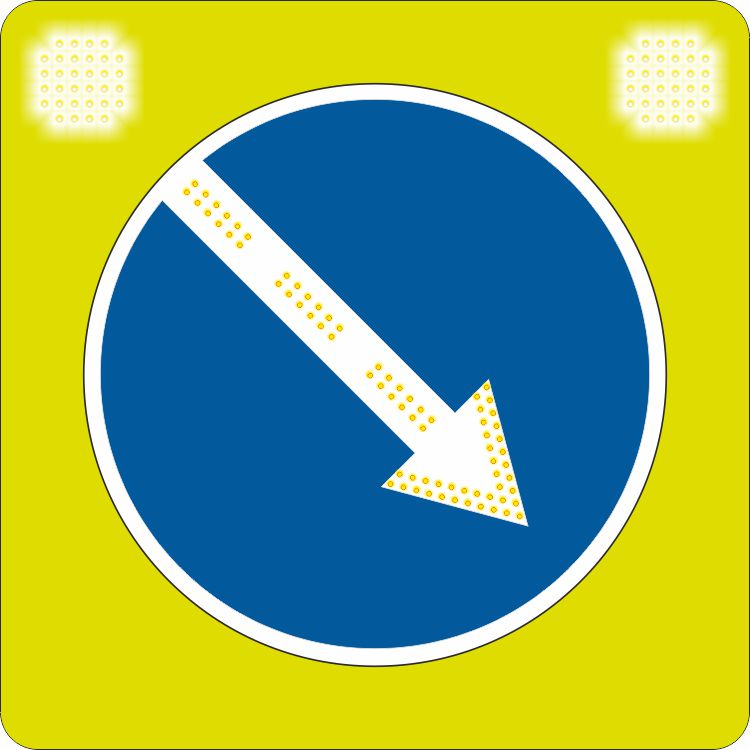 Знак 4.2.1 (4.2.2) Светодиодный дорожный знак на желтом щите с 2 проблесковыми маячками