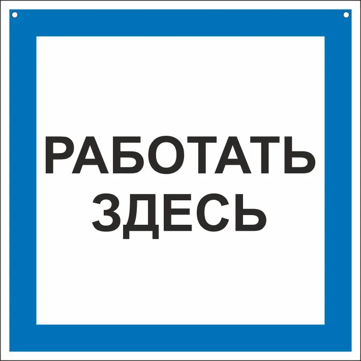 Плакат с отверстиями A11 Работать здесь, переносной с полиэфирным шнуром 250х250 (Пластик ПВХ 2 мм), СО 153-34.03.603-2003