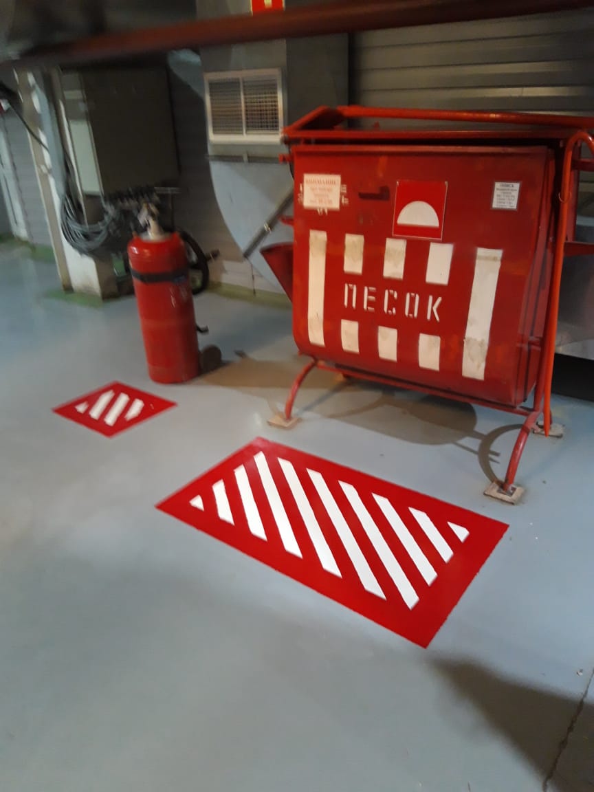 Услуга по нанесению элементов маркировки опасных зон: знаки безопасности по ГОСТ и индивидуального исполнения, сигнальная разметка и обозначение средств пожаротушения